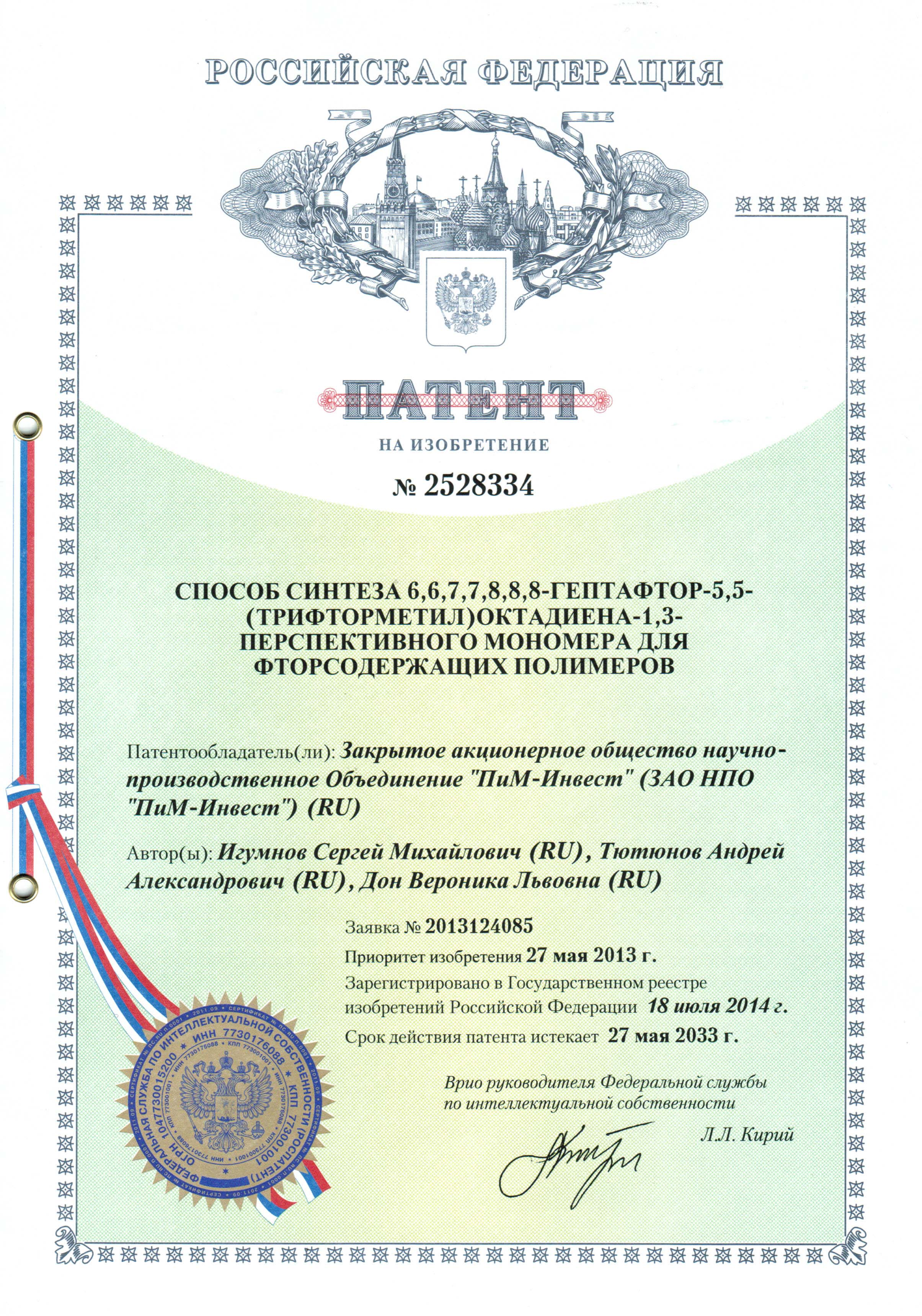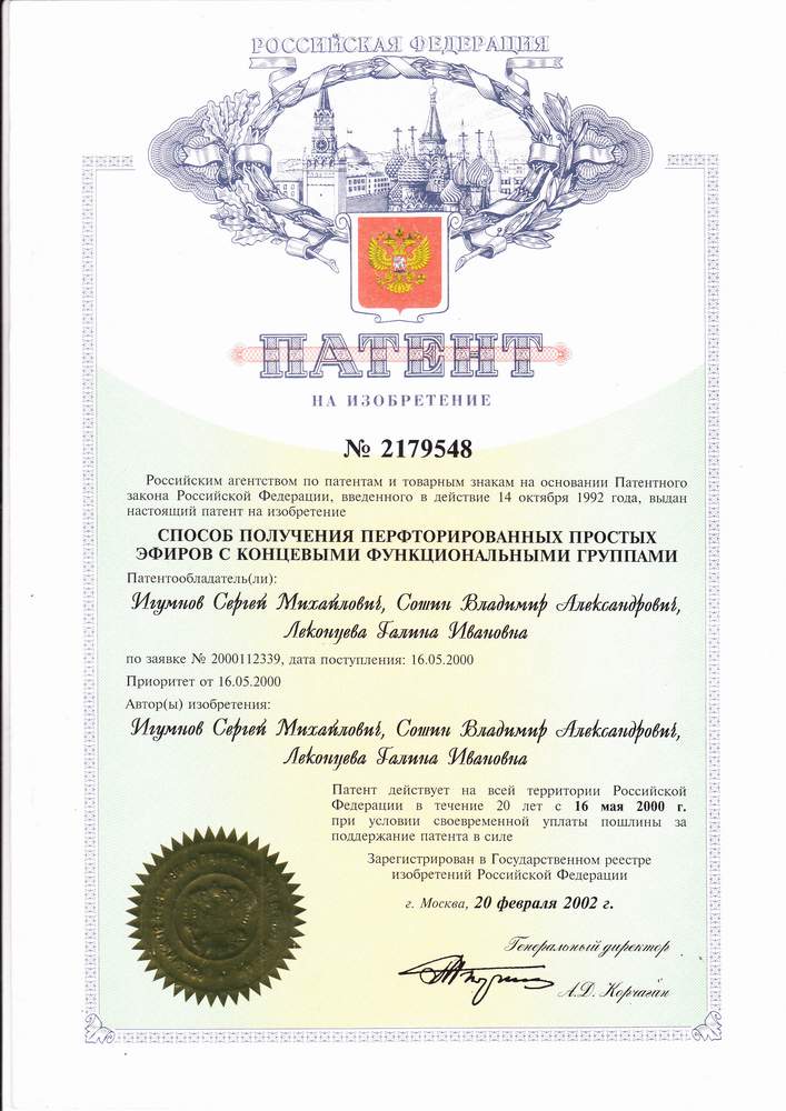 RU2179548 (C2) - 2002-02-20 METHOD OF SYNTHESIS OF PERFLUORINATED ETHERS WITH TERMINAL FUNCTIONAL GROUPS Invention relates to method of synthesis of perfluorinated ethers with terminal functional groups of