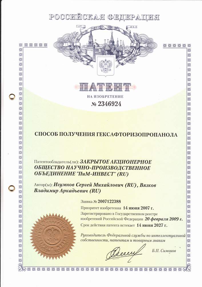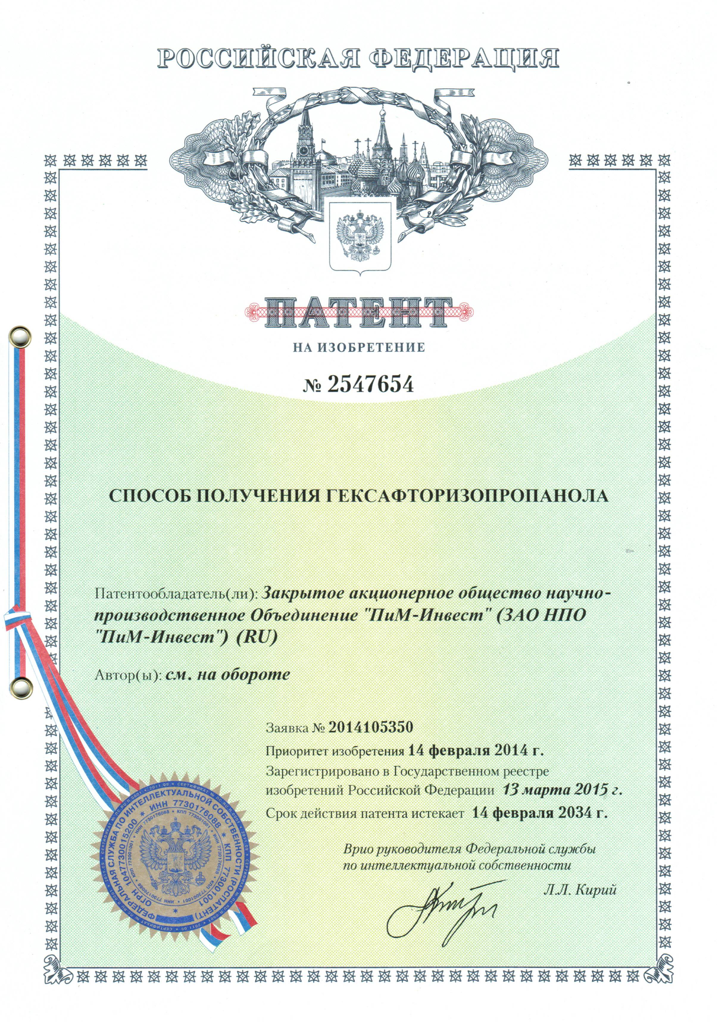 RU2470005 C1 - 2011-12-09 METHOD OF PRODUCING HEXAFLUOROISOPROPANOL |